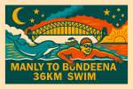 The swim is a shore start from Little Manly Beach. You will have to swim across Sydney harbour. You will swim across Botany Bay, if large shipping vessels are either entering or leaving the port; then your boat skipper will be instructed by the Race Director to proceed or hold and the swimmer tread water till approval is given to proceed crossing (similar to Manhattan swim). The third harbour to swim across is Port Hacking where swimmers will finish at Bundeena Beach. This swim is for highly experienced ocean swimmers and you may finish at night . Swimmers require boat support, swim support and observer on the boat and support craft is an optional escort.